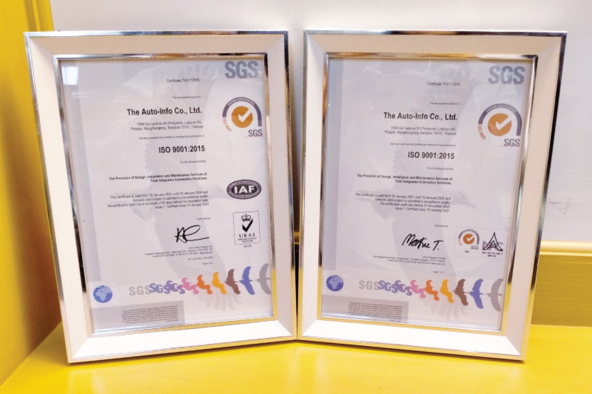 The Auto-Info Co., Ltd. has been Certified ISO 9001:2015 by UKAS (UK) and NAC (Thailand) under SGS (Thailand) accreditation.